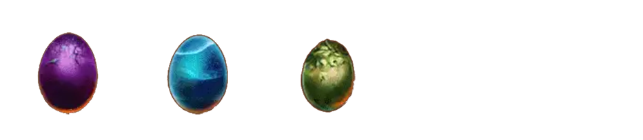 「紫蛋、藍蛋、綠蛋」:只要「紫蛋、藍蛋、綠蛋」連線時觸發賠付線(贏分=總投注/5*賠率)。
