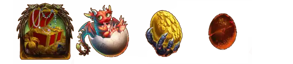 「寶藏、龍仔、金蛋、紅蛋」:只要「寶藏、龍仔、金蛋、龍蛋」連線時觸發賠付線(贏分=總投注/5*賠率)。