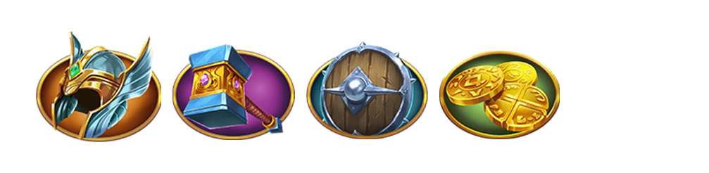 「頭盔、神槌、盾牌、金幣」「頭盔、神槌、盾牌、金幣」以數量來決定獲得獎金倍數。