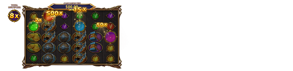 - 當不再進行掉落消除時,版面上所有倍數符號的倍數會被加總起來,然後乘上得分作為最終得贏分。