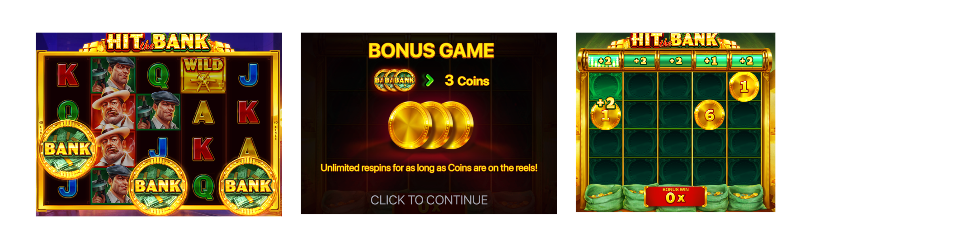 - 在任意遊戲中獲得3個以上「銀行」圖示出現在遊戲中即可觸發獎金遊戲。