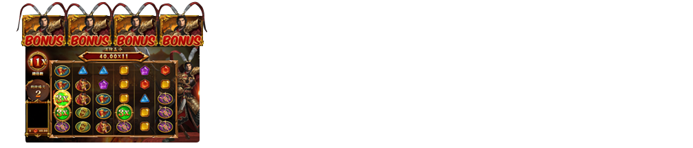 - 在任意遊戲中「戰神呂布BONUS」任意4、5、6個「戰神呂布BONUS」圖示出現在遊戲中即可進入15次免費遊戲環節。