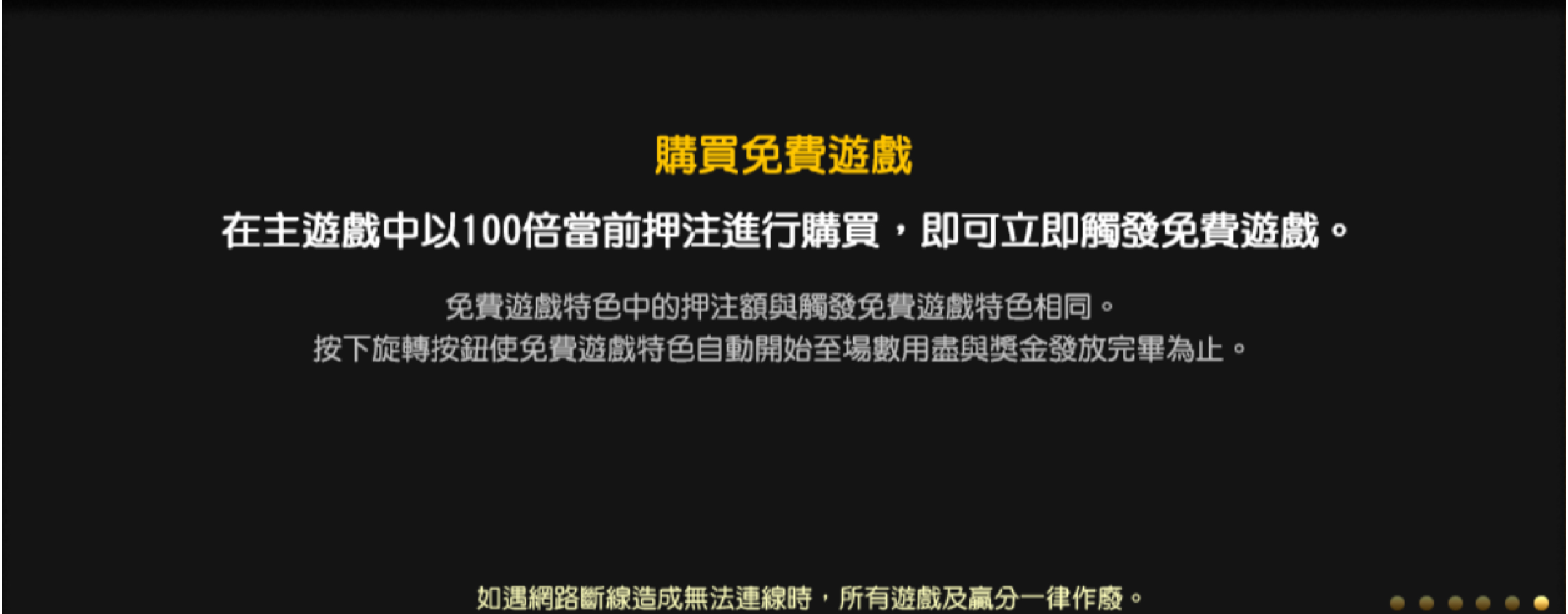 - 購買的免費遊戲特色中的押注額與觸發免費遊戲特色相同。
