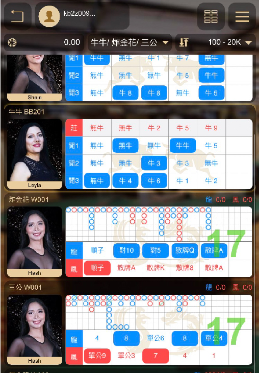 亞洲遊戲:有炸金花,牛牛(妞妞),溫州牌九,骰寶,色碟,番攤,安達巴哈,印度炸金花,三公。 |