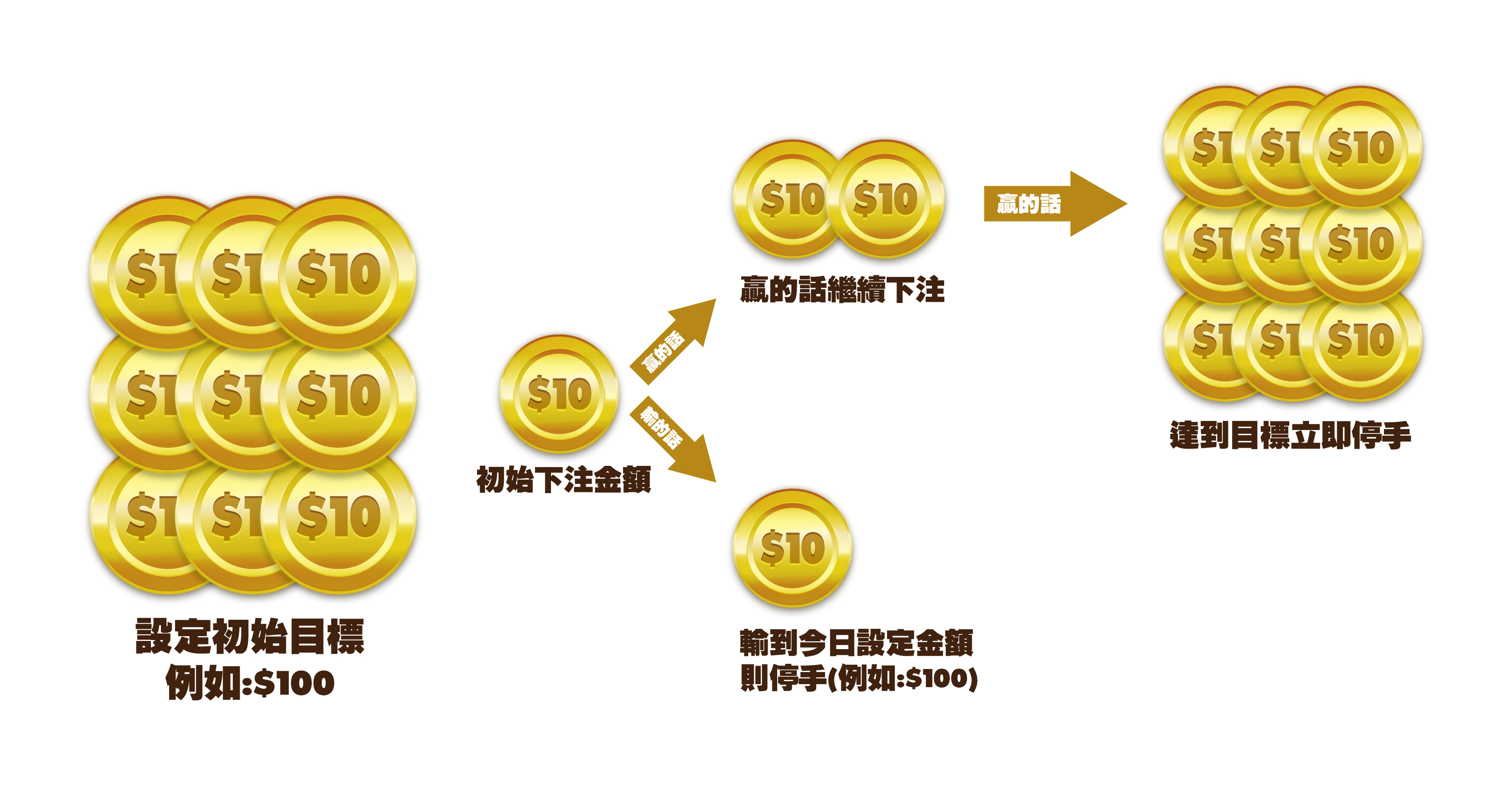 - >3.達到目標後停止下注:一旦你達到了設定的利潤目標,停止下注,不再進行更多的賭博。這樣可以確保你不會失去之前贏得的利潤,並保持你的資金在安全水平。