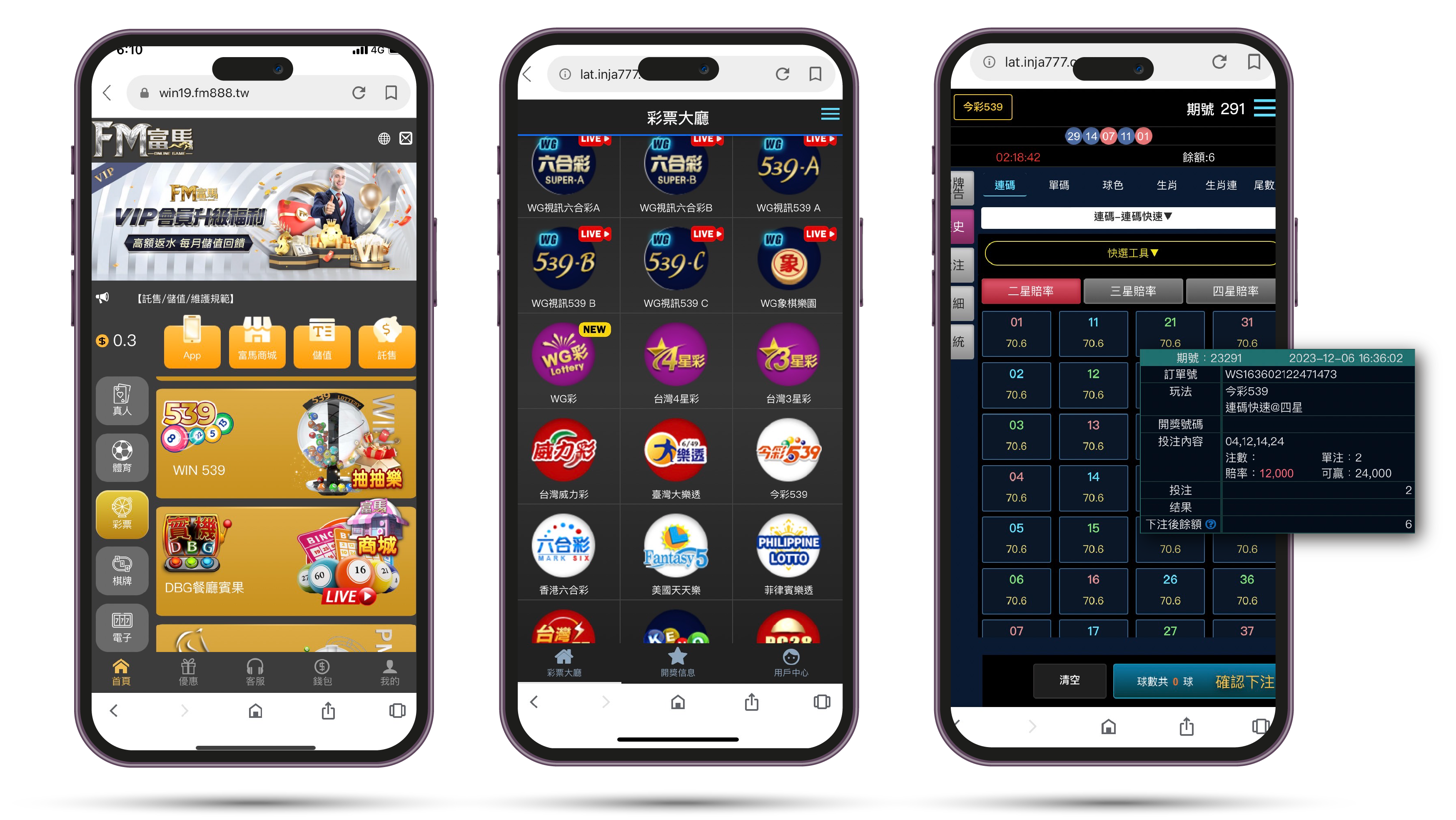 - 點選娛樂城,點選彩票選擇自己喜歡的彩票頻道,並點選539購買自己的預測結果,最低下注額皆為2元,確定後進行下注,下注後點選明細將會以玩家購買的賠率進行計算!